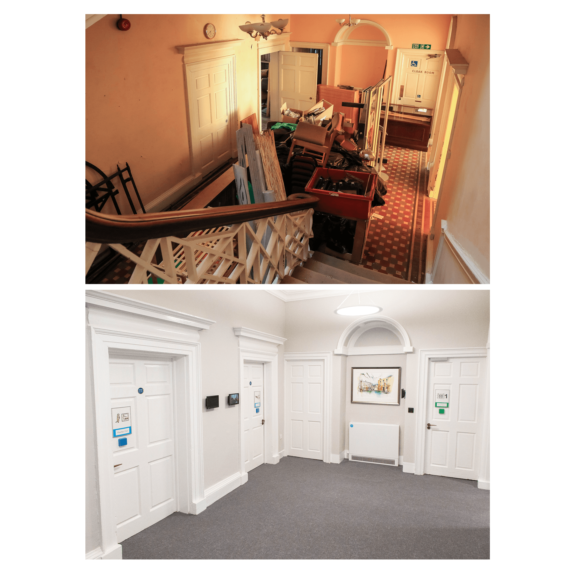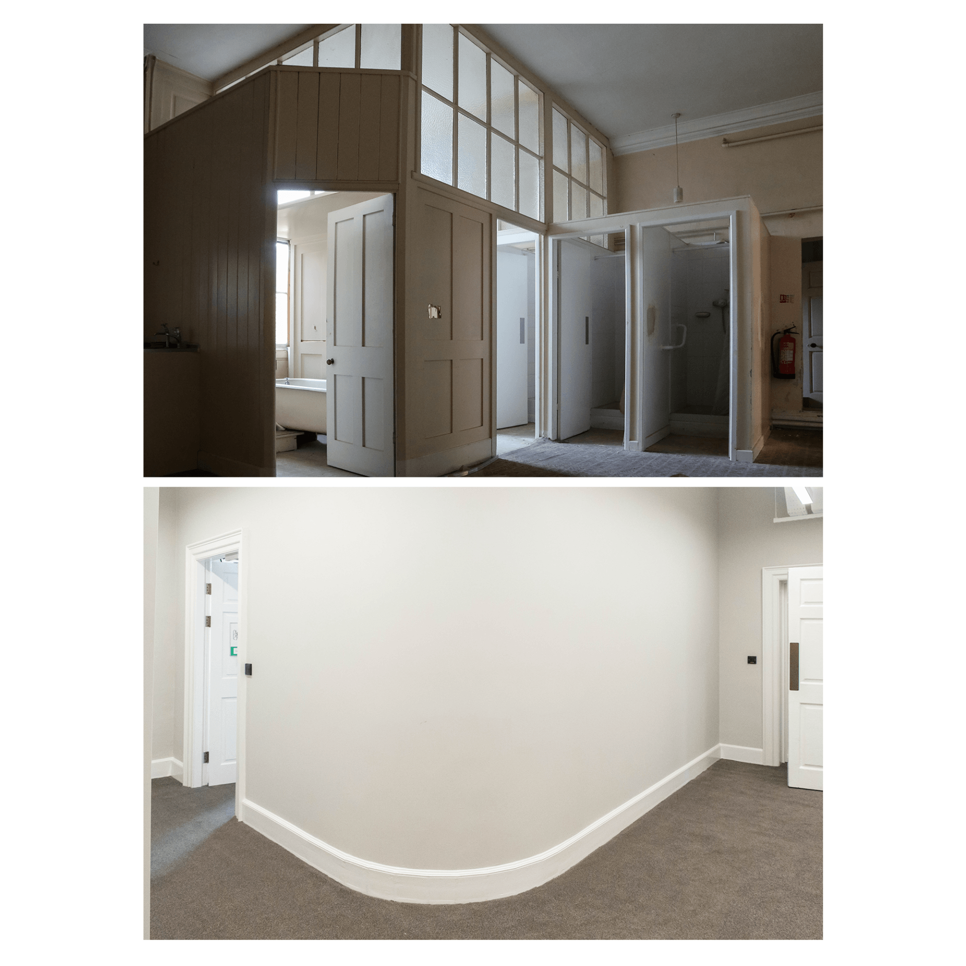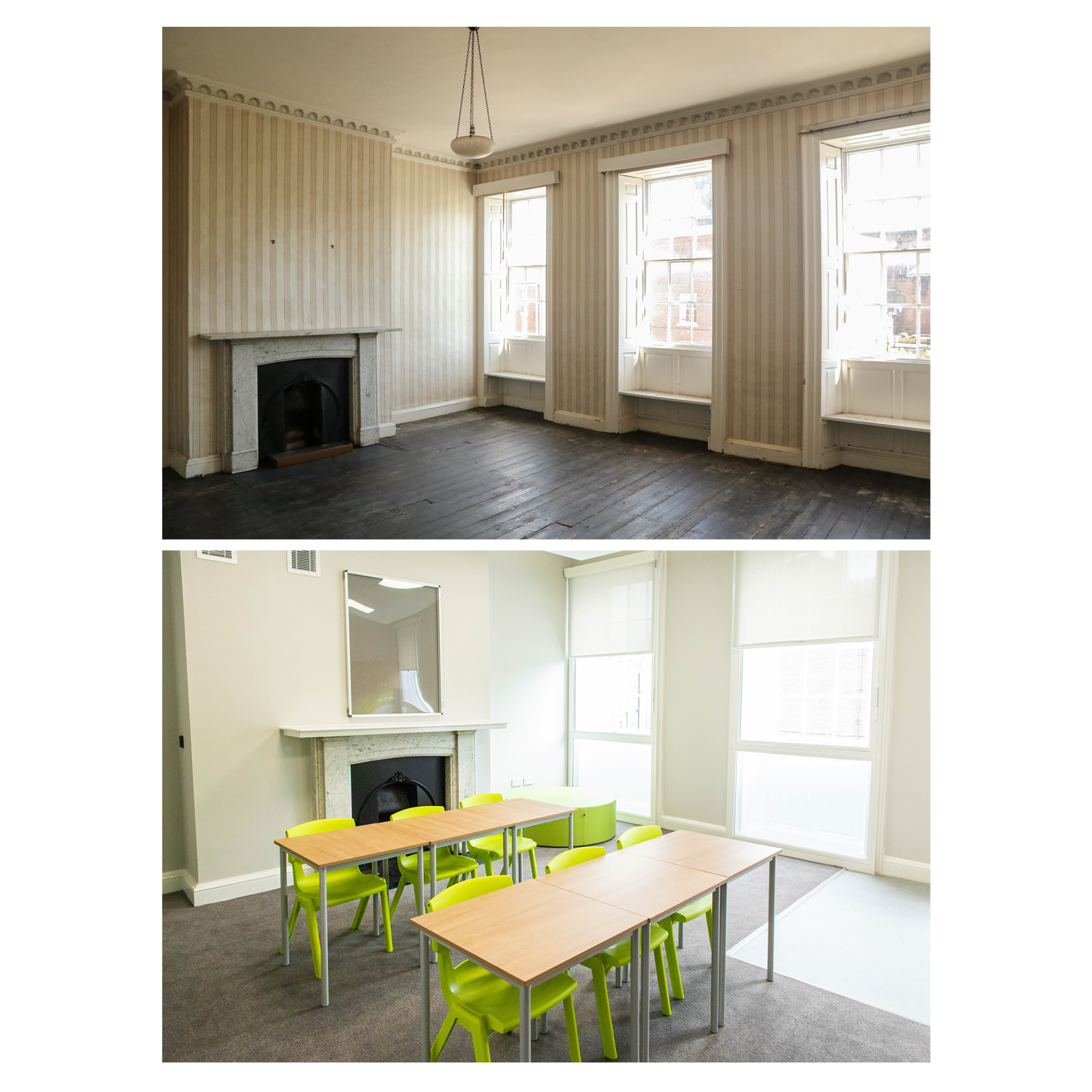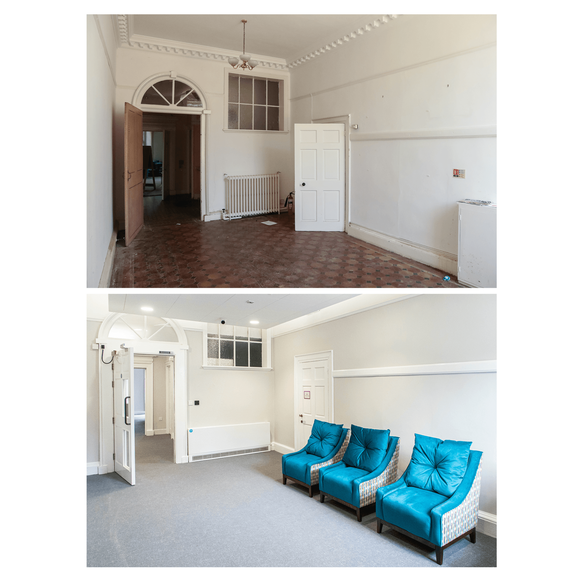 Below are a selection of before and after photos that convey the huge journey the building has taken whilst highlighting the existing features.