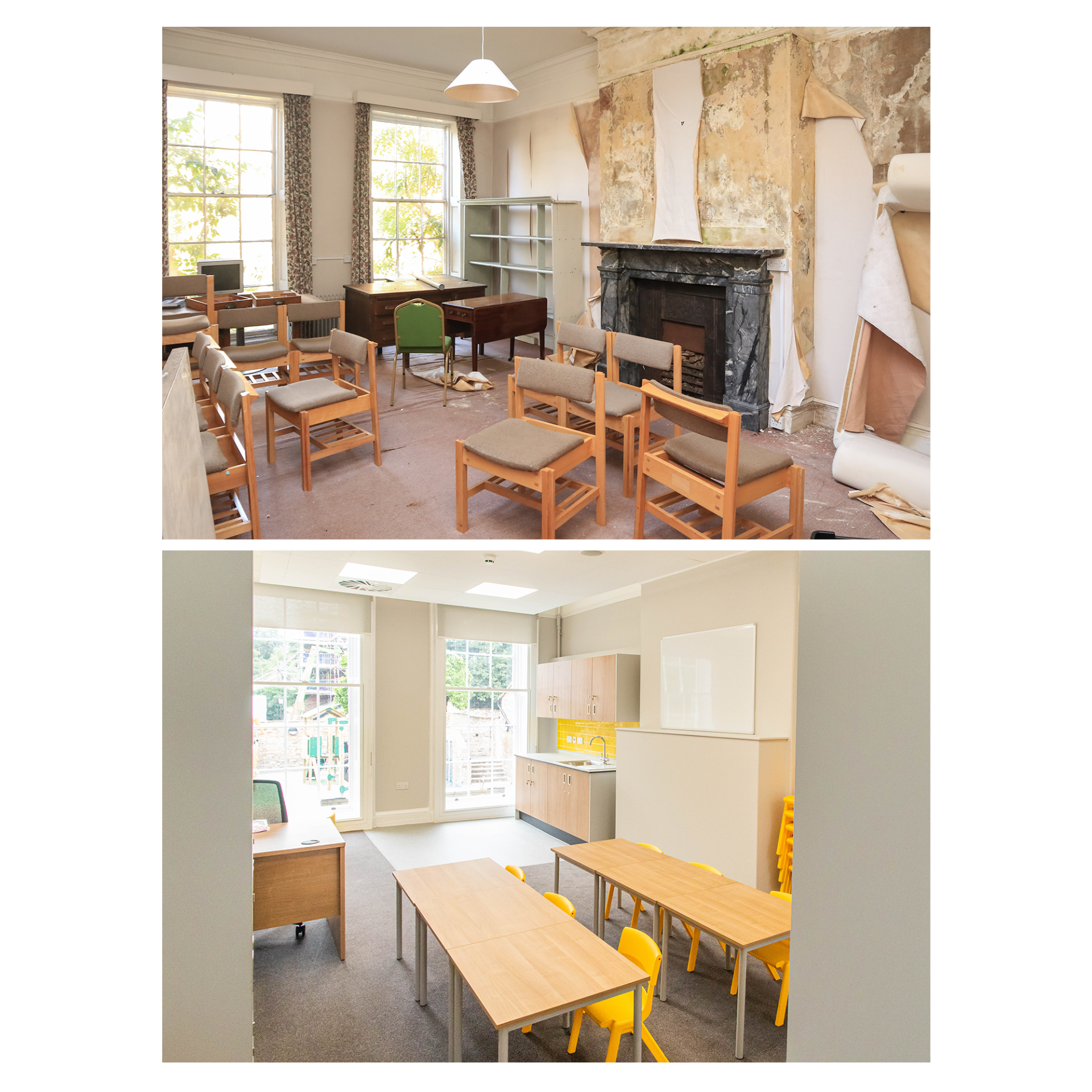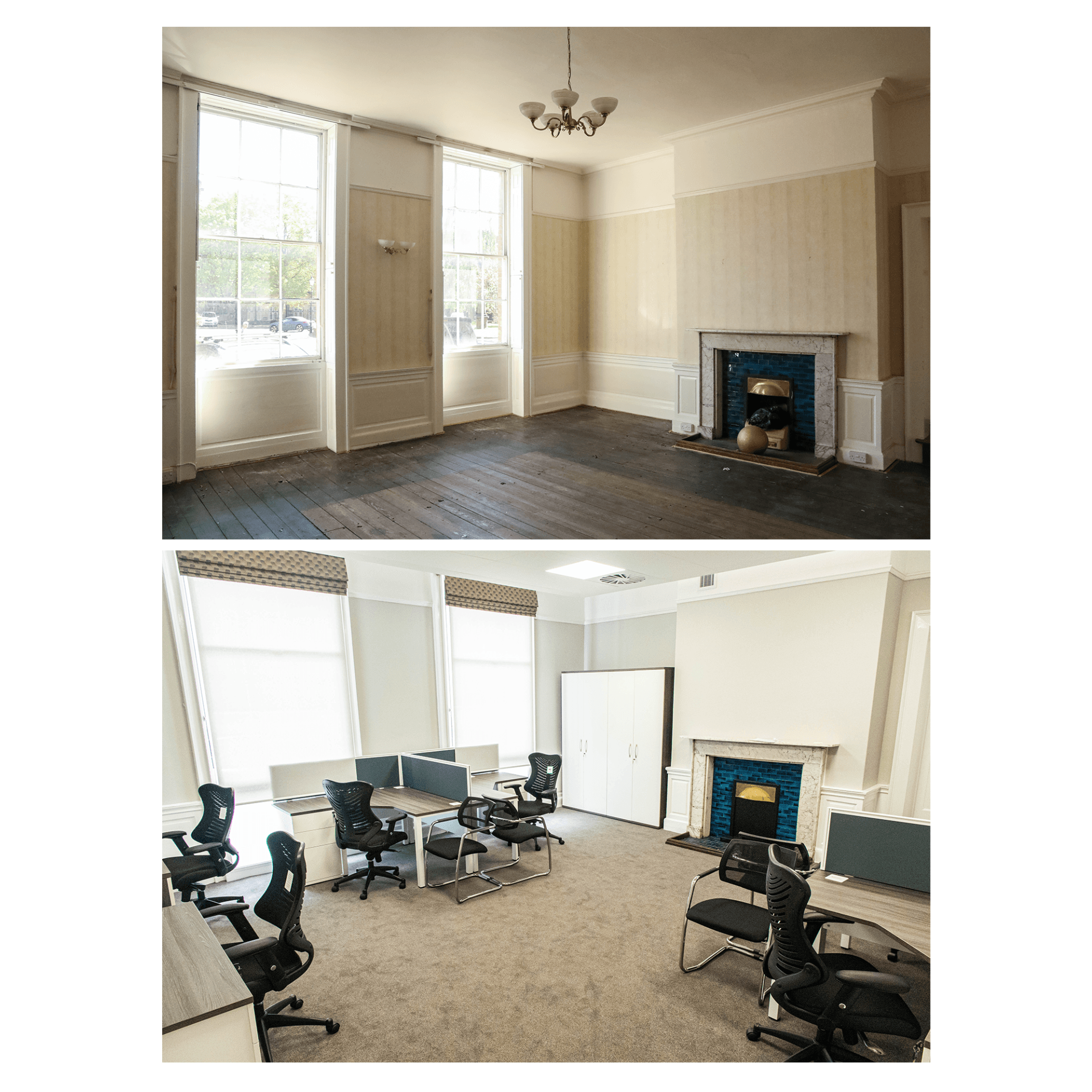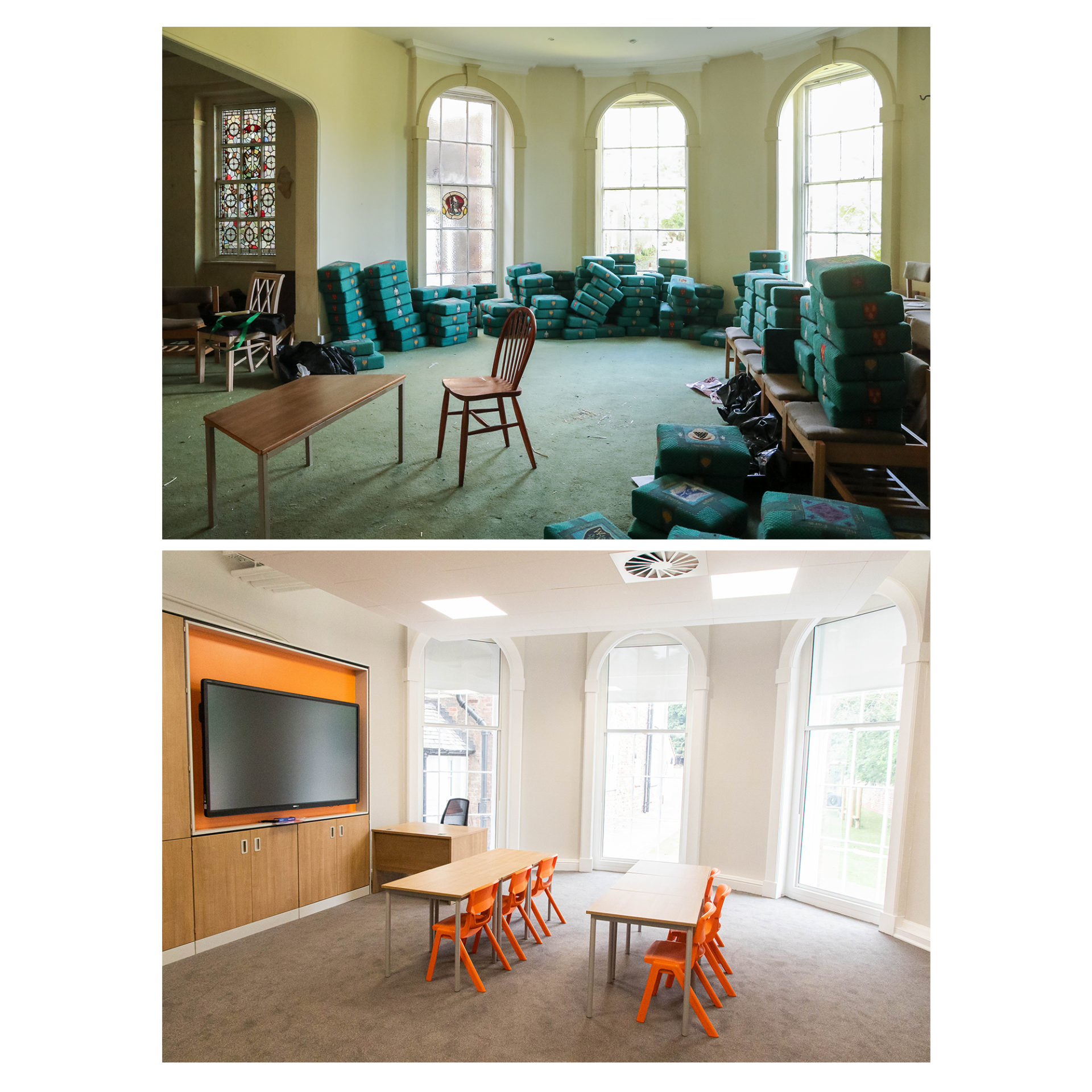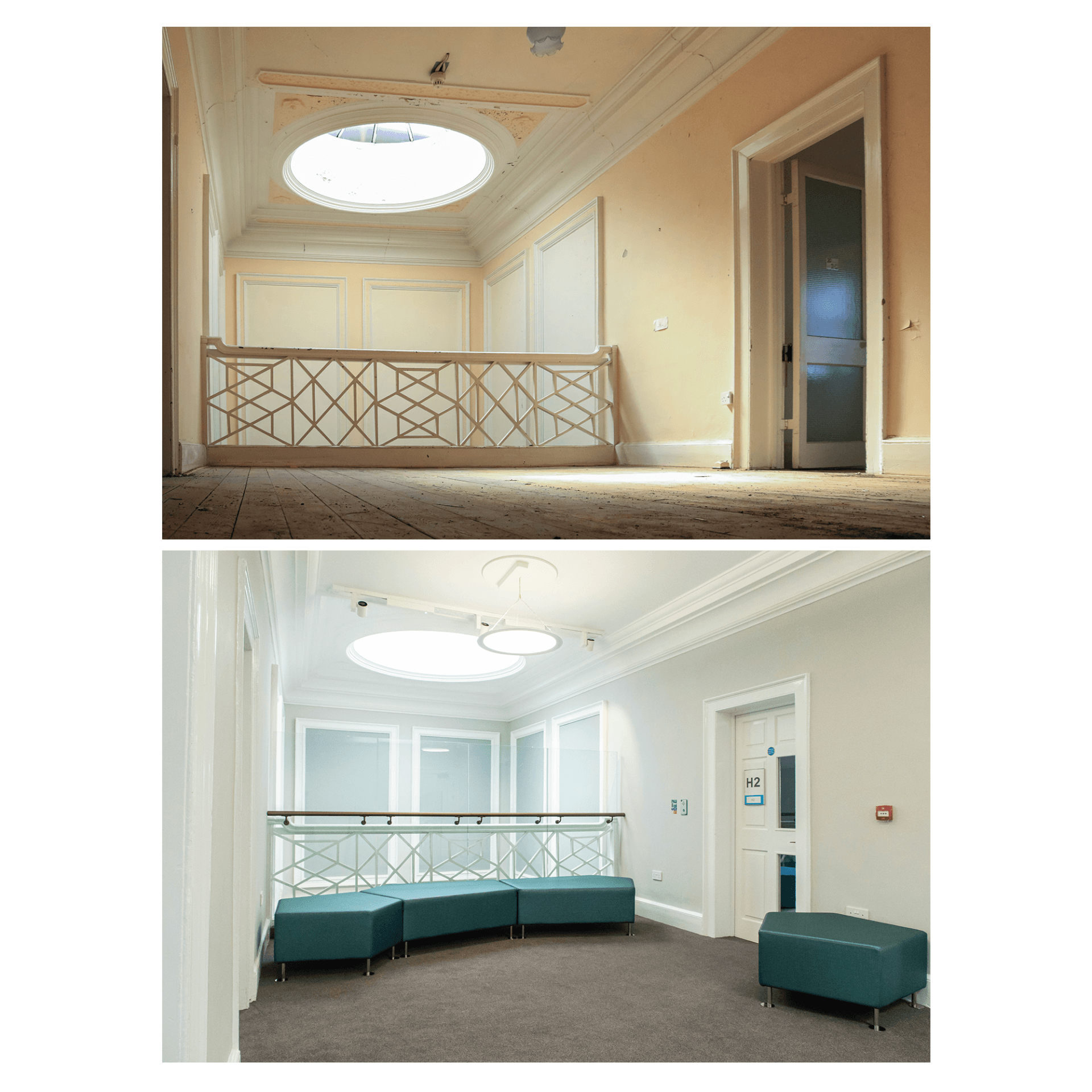 Below are a selection of before and after photos that convey the huge journey the building has taken whilst highlighting the existing features.